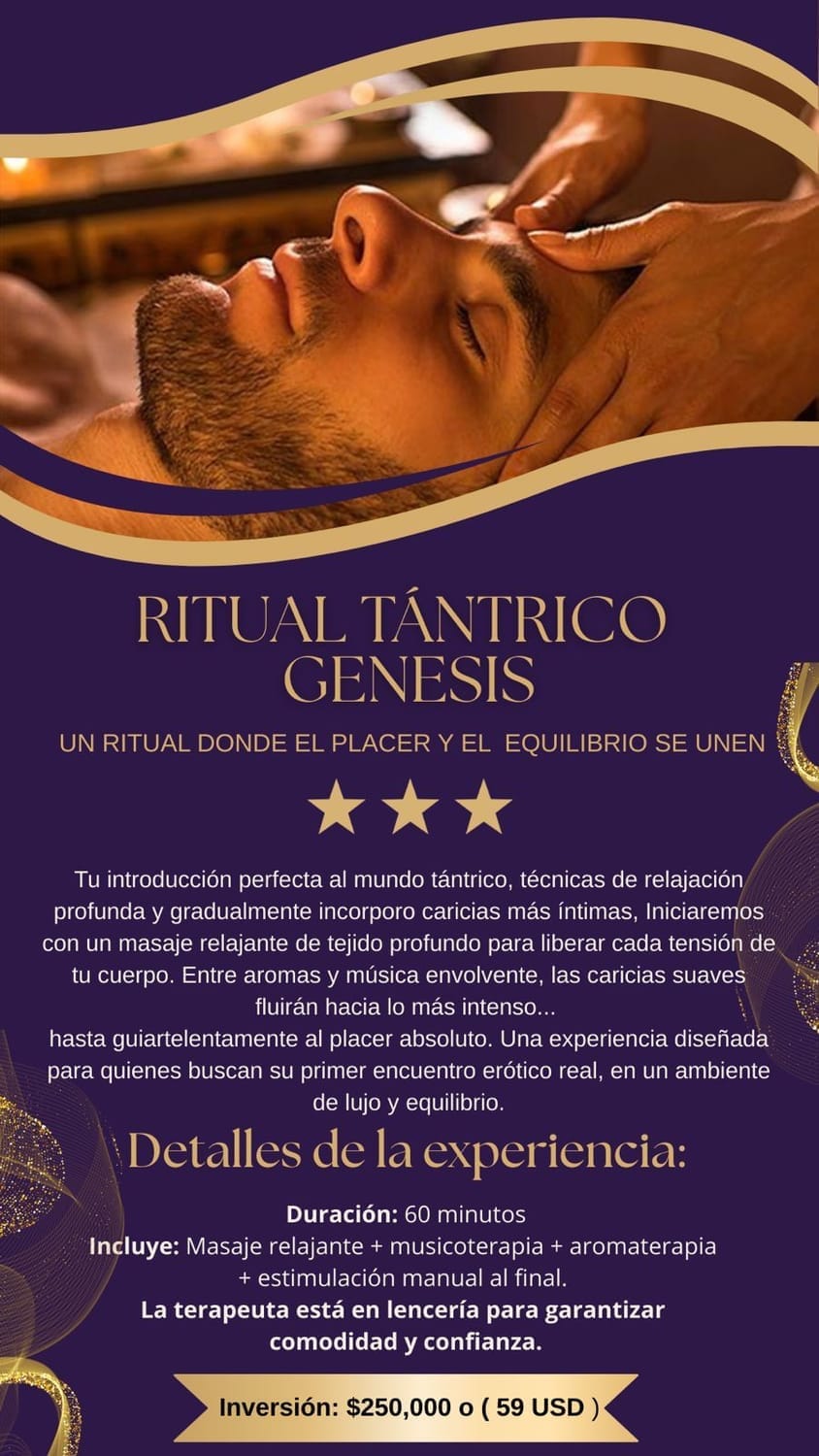 " En mi profesión vivo bajo constante estrés. El Tantra Experience Ritual de Mía es mi refugio sagrado. Sus manos tienen una magia especial... cada sesión es como renacer. No solo libera la tensión física, despierta una pasión que creía dormida. Es adictivamente