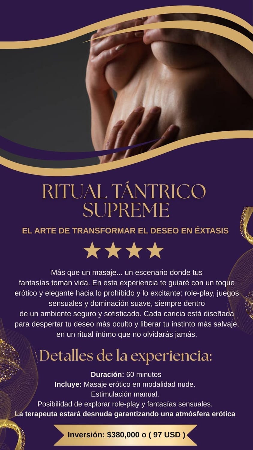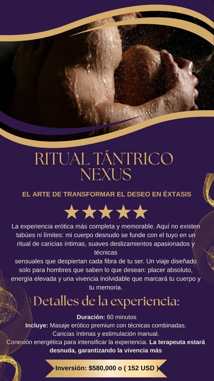" Después de mi divorcio pensé que nunca volvería a sentir pasión real. Mía no solo despertó mi deseo, sino que me enseñó que mi cuerpo era capaz de experimentar niveles de placer que jamás imaginé. Tantra Desire Ritual cumplió sueños que ni siquiera sabía que tenía. Ahora soy un hombre